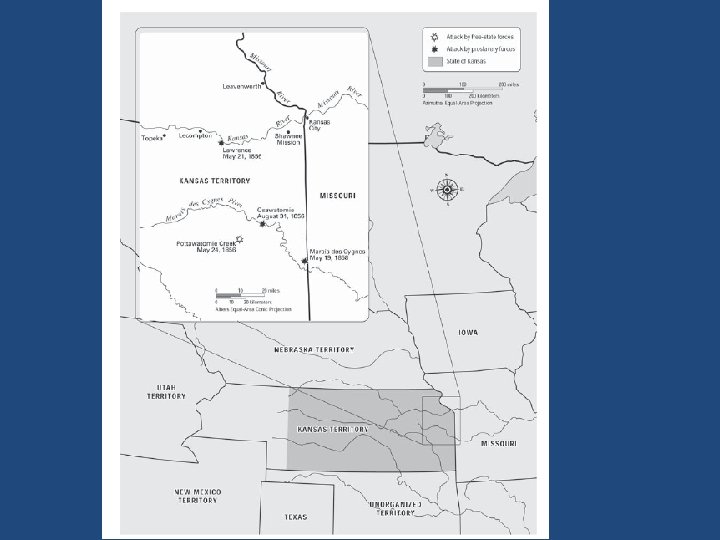 Bleeding Kansas (1854 -1858) • popular soveriegnty • sequence of violent events involving antislavery and pro-slavery groups • 63 people died • entered as a free state
