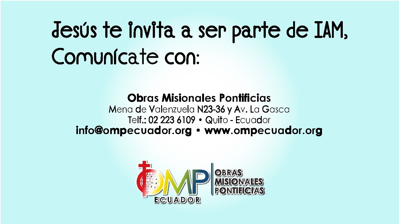 SERVICIO MISIONERO Hacen falta acciones y no tantas palabras, dando testimonio de amor, de paz y de la presencia de Dios en el mundo compartiendo con generosidad su aporte económico para con quién más necesita. el Animador de la IAM, hace amigos para Jesús y ayuda a que otros también quieran ser amigos de Jesús y misioneros para Jesús