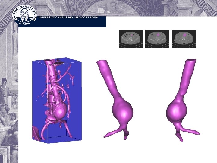 Details • • • Non stationary analysis Realistic conditions of pulsatile flow Patient specific 3 D model reconstructed from CT scans Assumptions: Blood was modeled as a newtonian, homogeneous and uncompressible fluid, with given density and viscosity values.