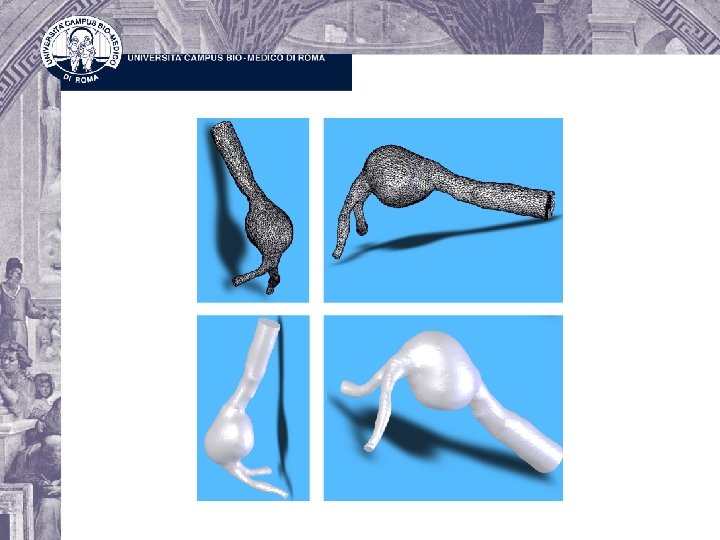 Results • • • Results agree with other data reported in the literaturei Synthesis of previous works in a patient specific approach, that migth be merged with physiological blood velocity and pressure Might represent an innovative tool for the prediction of aneurism rupture or clot formation