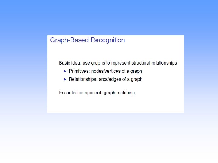 Vision Application: Handwriting Characters Representation From pixels to a small attributed graph l 1 e 1 l 5 D. Geiger, R. Giugno, D. Shasha, Ongoing work at New York University PODS 2002 e 3 l 2 e 5 e 4 l 3 l 4 8