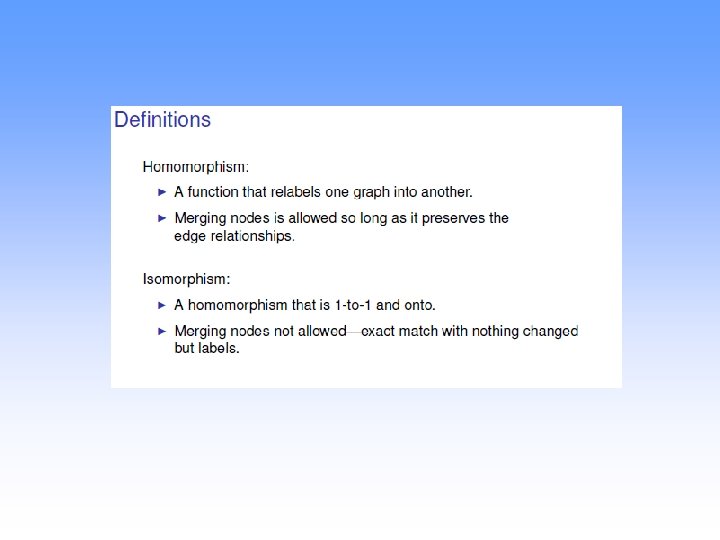 Different forms of exact matching • Homomorphism – It drops the condition that nodes in the first graph are to be mapped to distinct nodes of the other; hence, the correspondence can be many-to-one. – A graph homomorphism F from Graph G(VG, EG) and H(VH, EH), is a mapping F from VG to VH such that {x, y} ∈EG implies {F(x), F(y)} ∈EH. Zheng Zhang, 27. 05. 2010 Exact Matching slide 23