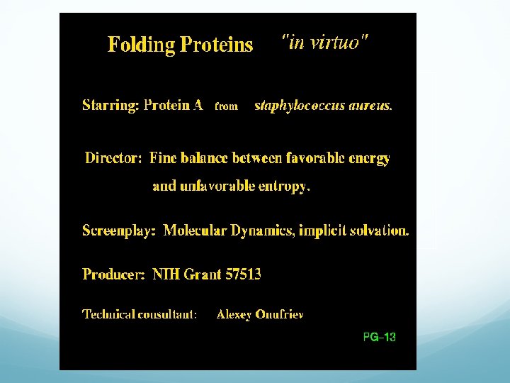 The magnitude of the protein folding challenge: Enormous number of the possible conformations of the polypeptide f 2 f 1 f 4 f 3 A typical protein is a chain of ~ 100 amino acids. Assume that each amino acid can take up only 10 conformations (vast underestimation) Total number of possible conformations: 10100 Suppose Nature “makes” each energy estimate in just 10 -15 seconds (which is about right, from how long it takes for these things to move). In today’s language, just 1 float point operation on a Penta-Flop supercomputer. An exhaustive search for the global minimum would take 10 85 seconds ~ 3*1078 years. Age of the Universe ~ 2*1010 years. Levinthal’s paradox: Proteins CAN NOT fold!