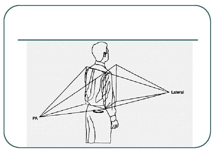l With a conventional radiograph of the patient’s anatomy, information with respect to the dimension parallel in the xray beam is lost. • This limitation can be overcome, at least for obvious structures, by acquiring both a posteroanterior (PA) projection and a lateral projection of the patient.