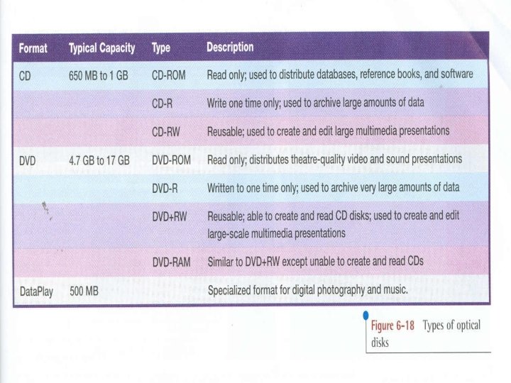 Storage • The computer’s operating system, application programmes and data files are stored outside its CPU when not in use. • Most common storage mechanism – the magnetic disk, Recordable CDROMs
