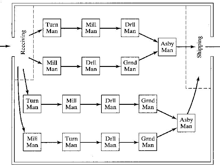 • One of the important manufacturing advantages of grouping workparts into families can be explained with reference to figures below