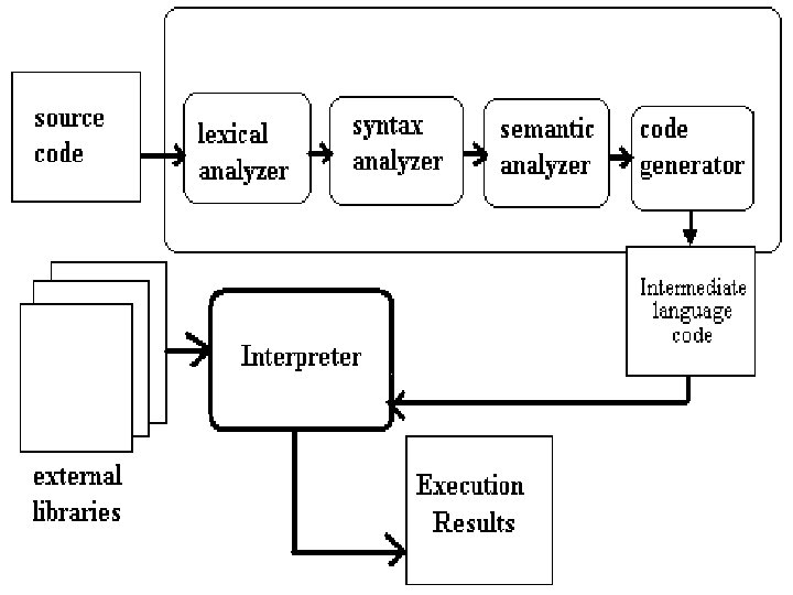 Interpreter Computer program that executes, i. e. performs, instructions written in a programming language. An interpreter generally uses one of the following strategies for program execution: § § § execute the source code directly translate source code into some efficient intermediate representation and immediately execute this explicitly execute stored precompiled code made by a compiler which is part of the interpreter system