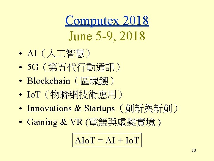 Computex 2018 Kun-Mao Chao (趙坤茂) Department of Computer Science and Information Engineering National Taiwan University, Taiwan A note given in BCC class on May 29, 2018