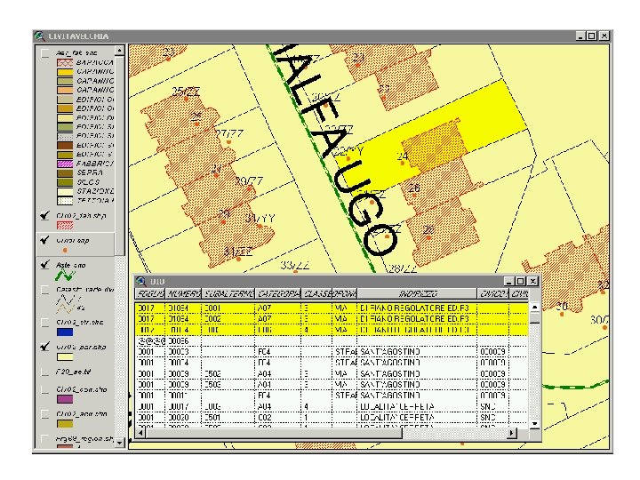 In questo scenario infatti, gioca un ruolo fondamentale il Sistema Informativo Territoriale che il comune ha iniziato a realizzare tre anni fa per fasi successive, che ha dato il via ad un progetto generale a largo raggio tutt’ora in corso: “la riorganizzazione operativa dei settori comunali”. Edilizia Ambiente Manutenzione Lavori Pubblici Urbanistica Cartografico SIT Socio sanitario Entrate Anagrafe Patrimonio Traffico Attività Prod.