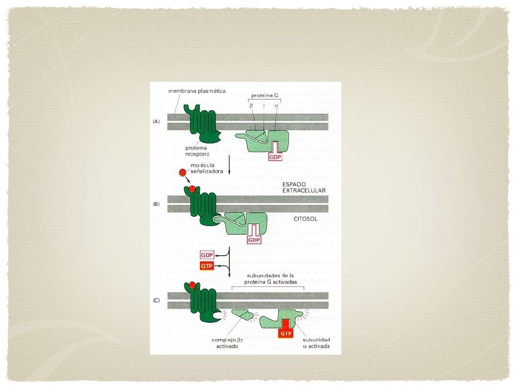 Receptores acoplados a Proteína G Las proteínas G forman una familia de proteínas caracterizadas por la fijación de GTP (Guanosín Trifosfato) y su posterior hidrólisis a GDP (Guanosín Difosfato) durante su ciclo funcional, a lo cual deben su nombre. Su utilidad en la fisiología celular es la de actuar como interruptores biológicos mediante la transducción de señales. El ligando se une al GPCR (siglas en inglés de receptor celular asociado a proteína G), desencadenado así una cascada de actividades enzimáticas como respuesta.