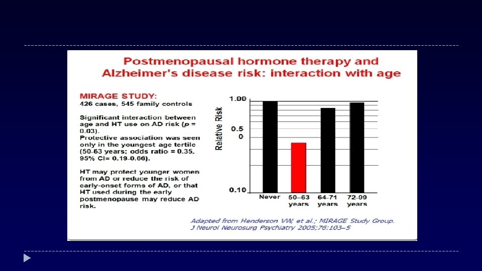 TOS &Alzheimer Roma, 9 -12 novembre 2017 Discrete Annual Hazard The Cache County Study 0. 12 0. 10 Women Men 0. 10 0. 08 0. 06 0. 04 0. 02 65 0 HRT non user HRT use <3 y HRT use 3 -10 y HRT use >10 y 70 75 80 year 85 90 95 100 0 65 70 75 80 85 90 95 100 year Zandi PP et al, JAMA. 2002