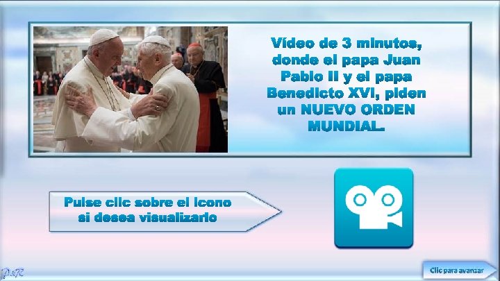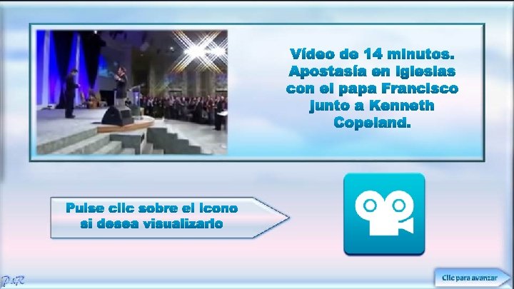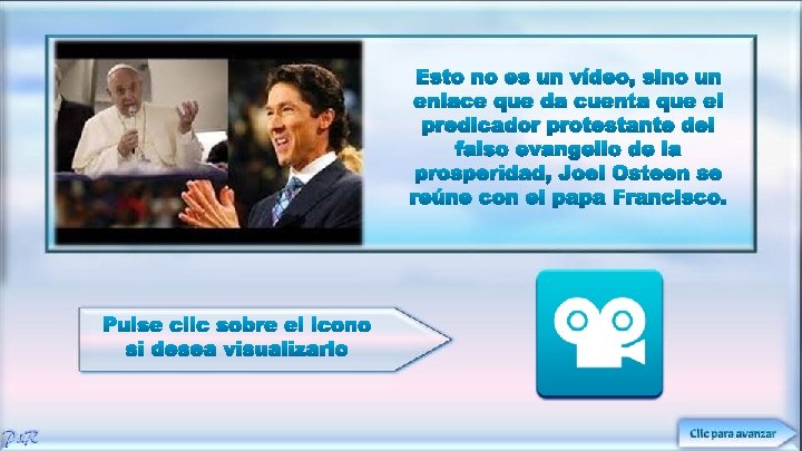 Vídeo de 7 minutos, donde apreciaremos a falsos líderes de las iglesias evangélicas apostatas pertenecientes al Consejo Mundial de Iglesias (son liberales que rechazan la inspiración COMPLETA de las sagradas escrituras y su carácter de ÚNICA regla de fe y conducta). Aquí los veremos cómo se inclinan ante el papa. Dentro de ellos está los representantes de la Iglesia Luterana evangélica de América, Iglesia metodista Unida, Iglesia reformada de América, Iglesia Presbiteriana de Estados Unidos, Convención Nacional Bautista de Estados Unidos, Iglesia Pentecostal de Santidad internacional, Asociación Nacional de Evangélicos, Iglesia Luterana de Atlántico, Concilio de las Iglesias de la Ciudad de New York.