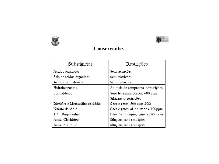 Requisitos para aprovação de Aditivos 1 - Ter eficácia sobre o alimento ou sobre o animal 2 - Não prejudicar a saúde pública ou animal 3 – Não prejudicar o meio ambiente 4 – Não alterar a qualidade dos produtos 5 – Ser controlável no alimento 6 – Não ter uso terapêutico nas condições que é usado 7 – Não ter uso critico em medicina humana ou veterinária