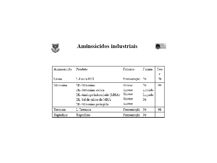Proteína Bruta e ácidos aminados limitantes dos suplementos protéicos de origem vegetal e animal.