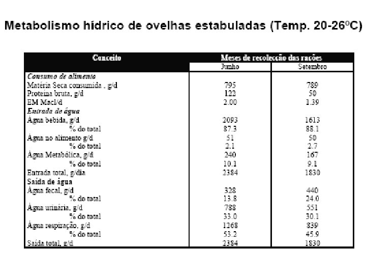 CONCEITOS EM NUTRIÇÃO ANIMAL A Água: Produção de água metabólica apartir dos nutrientes Kolb, 1987
