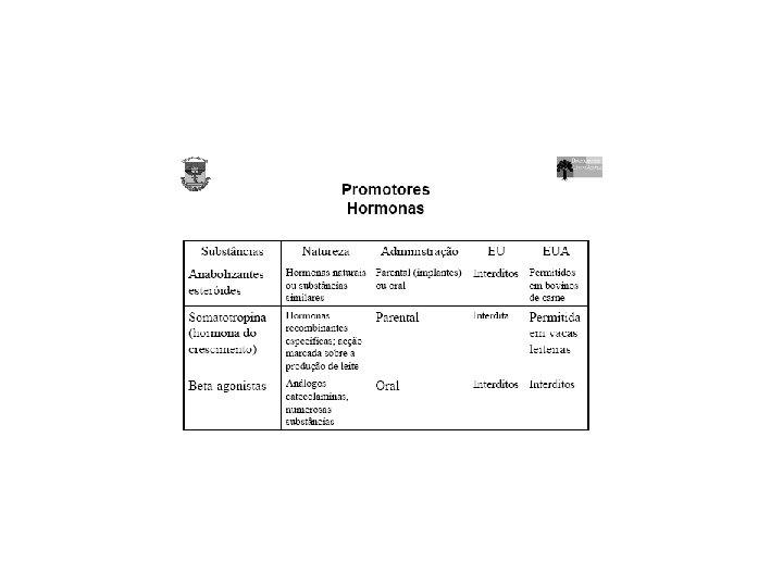 Antibióticos autorizados na União Europeia alimentação animal - monoensina de sódio; - salinomicina de sódio; - flavofosfolipol e - avilamicina. Há um tendência para a proibição do uso destas substâncias • como promotores do crescimento • •