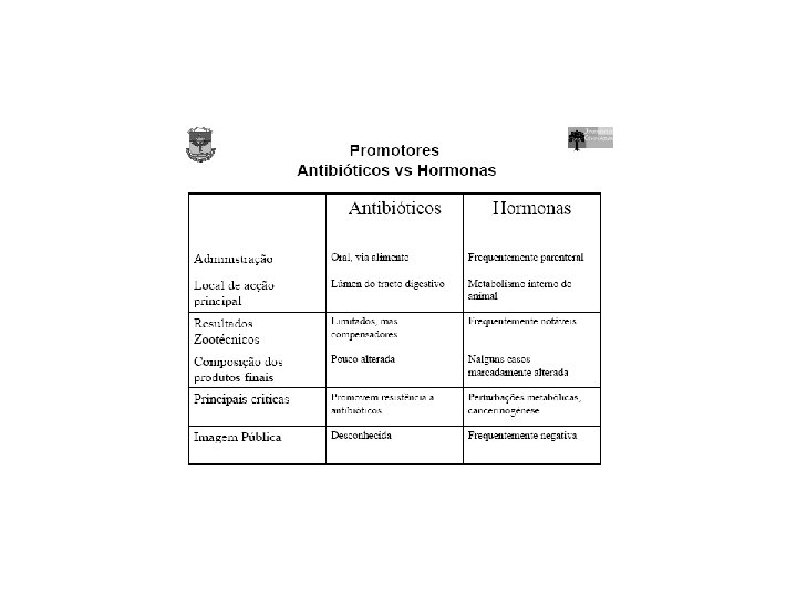 • • • • Antibióticos Promotores Pontos Fundamentais - Antibióticos em doses muito baixas estimulam crescimento/produção e melhoram índice de conversão - Fenómeno descoberto em finais dos anos quarenta - Utilização em larga escala desde 1950 - Efeitos agora limitados, mas compensadores - Mecanismos complexos ainda mal explicados - Acção fundamental a nível digestivo, sobre a microflora - Dão origem a flora resistente - Estas resistências parecem não ter consequências - Ainda assim autorização limitada a antibióticos: - de espectro limitados - pouco importantes em medicina