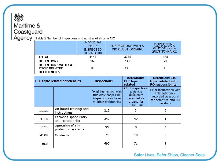 CIC Questionnaire and Guidelines • • • 10 questions Every question HAD to be answered Only one CIC was carried out per ship Normal targeting applied Ship is not due for inspection then no CIC 10