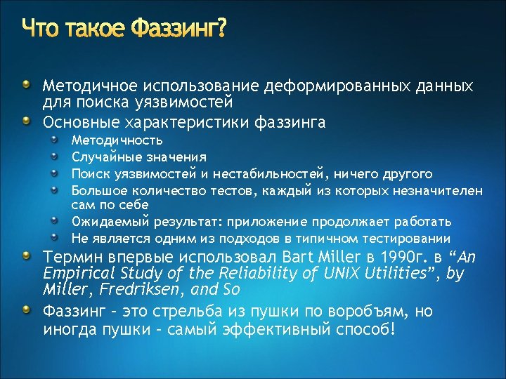 Сентябрь 2003 года: червь «Бластер» Две строчки кода в RPCSS: while (*pwsz. Temp != L'\') *pwsz. Server. Name++ = *pwsz. Temp++; Привели к >1, 500, 000 инфицированных компьютеров 3, 370, 000 звонков в службу поддержки in Sep 03 (как правило вирус генерирует около 350, 000) Множество негативных комментариев в прессе: “This [is] going to raise the level of frustration to the point where a lot of organizations will seriously contemplate alternatives to Microsoft” Gartner "There's definitely caution warranted here. [Microsoft's security] efforts were sincere, but I am not sure if they were sincere enough. " Forrester Der Spiegel