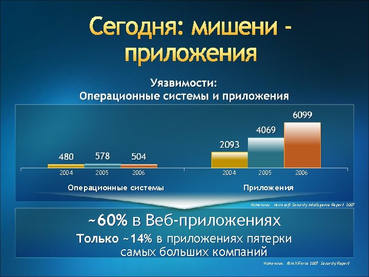 Видимые улучшения в Microsoft Доля Microsoft в опубликованных уязвимостях 4. 2% 3. 7% #1 H 107 #1 2007 2. 5% H 108 Источник: IBM X-Force 2007, 2008 Security Report “Why try to chase a difficult overflow out of Vista when you have Acrobat Reader installed, some antivirus software with shoddy file parsing, and the latest i. Tunes? ” Halvar Flake Security Researcher Microsoft Blue. Hat Conference September 2007