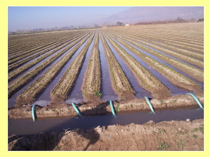 Si se sistematizan las unidades de riego ya sea concentrando caudal en hileras individuales o en surcos se consigue: ü Reducir el tiempo de avance ü Mayor control del agua aplicada (Volumen) ü Aumentar la eficiencia de aplicación ü Poder realizar riegos volantes ü Usar estrategias ante escasez de agua