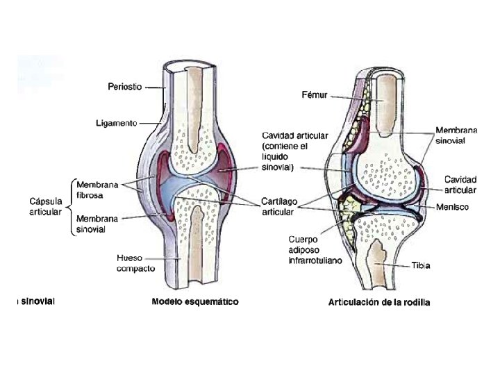 SINOVIALES • Se unen mediante cápsula articular – Compuesta por: • Membrana fibrosa externa • Membrana sinovial serosa – Cavidad articular • Líquido sinovial – Cartílago articular