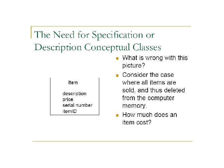 Disadvantages of noun phrase identification • The imprecision of natural language. – Different noun phrases may represent the same conceptual class or attribute, among other ambiguities. • Nouns do not always result in classes, or objects in the problem domain. – Many sentences in a functional specification may be in the wrong form for easy identification of the objects, and classes. For example, ” roll back the transaction” or “the software will compute the average salary”. – In many cases, the nouns, especially subjects to sentences, refer to (1) an entire assembly or a computer software configuration, (2) a subassembly or a software component, (3) an attribute, (4) service.