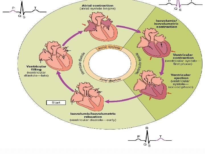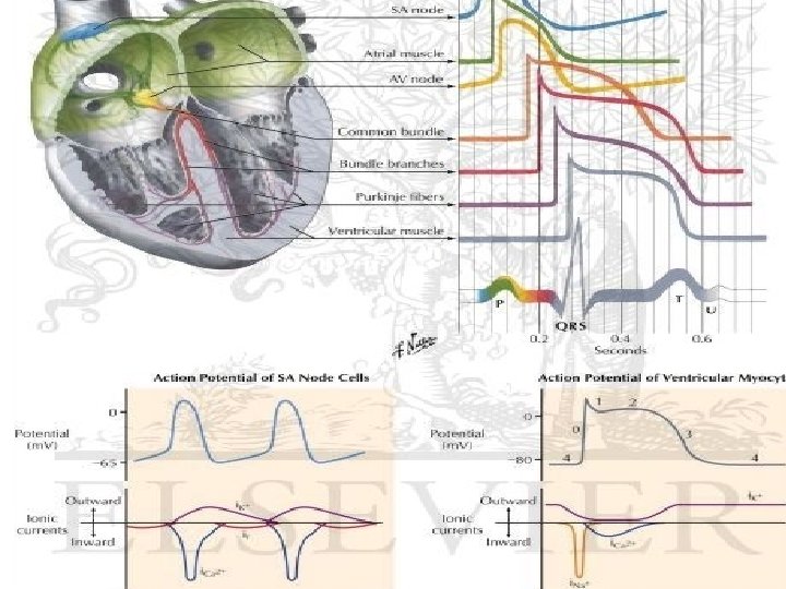 Sequence of Excitation �Sinoatrial (SA) node generates impulses about 75 times/minute �Atrioventricular (AV) node delays the impulse approximately 0. 1 second �Impulse passes from atria to ventricles via the atrioventricular bundle (bundle of His) to the Purkinje fibers and finally to the myocardial fibers
