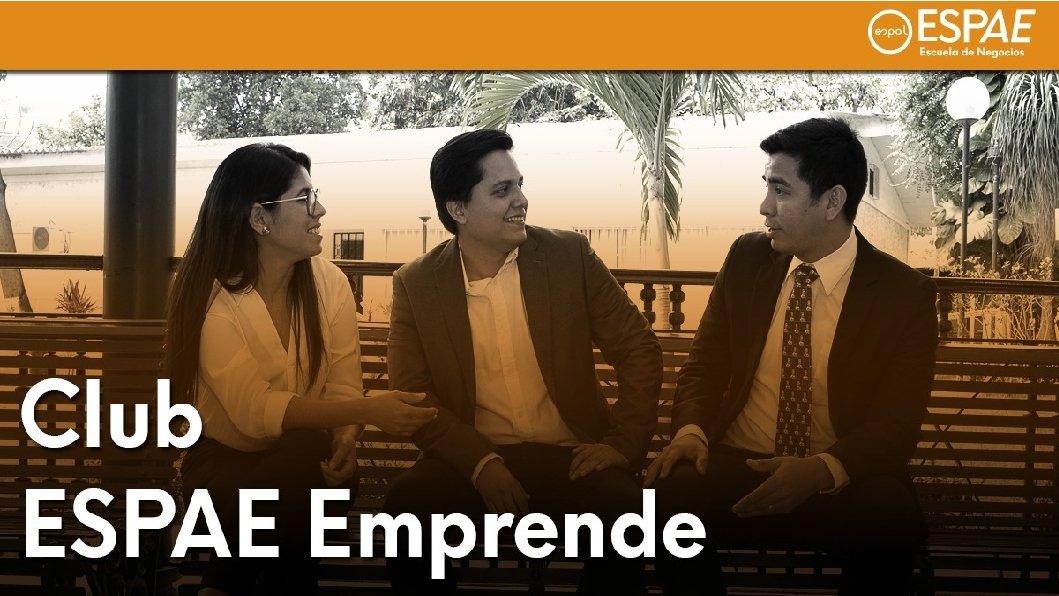 ESPAE Emprende Con el objetivo de compartir experiencias, mejores prácticas y crear conexiones valiosas, se creará un club conformado por miembros de nuestra comunidad que sean emprendedores o propietarios de negocios. El Club pretende ser una red profesional de los miembros de nuestra comunidad, que compartan el interés por conectarse, innovar, compartir experiencias y adquirir nuevos conocimientos. Formarán parte los participantes del programa de mentorías y aquellos interesados que se registren de manera virtual en nuestra página web, lo que permitirá alimentar un directorio virtual, compartir información, oportunidades y actividades de interés.