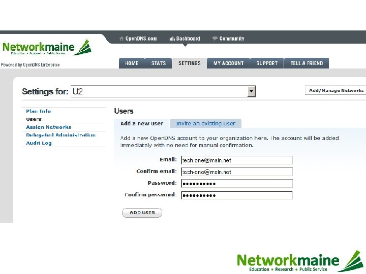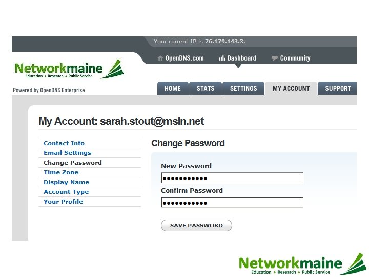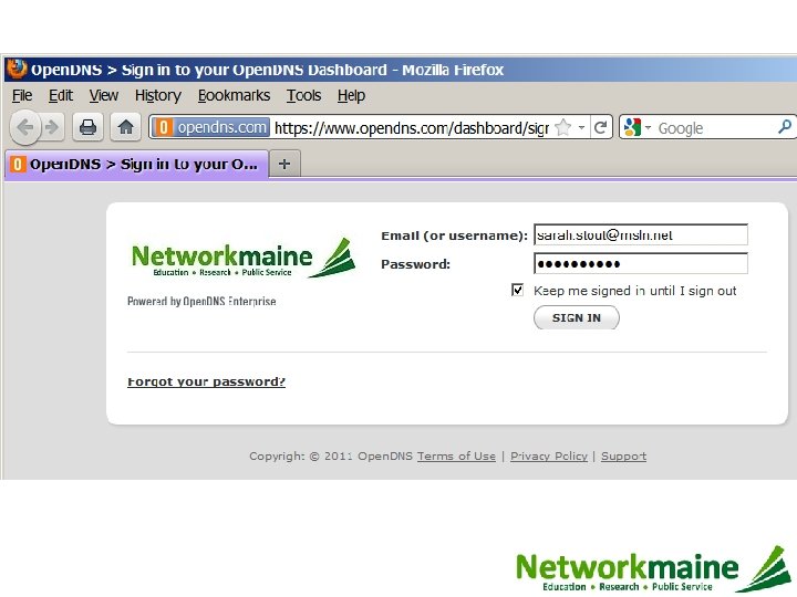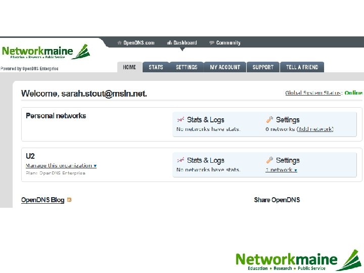 Open. DNS Support • Web Support through Open. DNS Admin pages • Web Support at www. msln. net – Help pages – Link to the recording of this session • Live Support from Networkmaine – (888) FOR-MSLN – support@msln. net