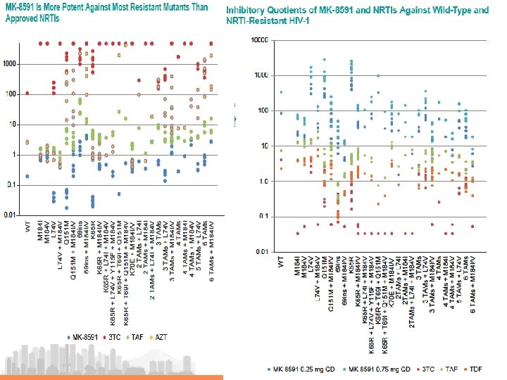 GS-9131 • Broad range of activity against HIV-1 subtypes • Pro-drug of the GS-9148 with low potential for mitochondrial and renal toxicity • Maintains in vitro activity against HIV-1 viruses harboring most major NRTI resistance mutational pathways GS-9131 EC 50=0. 29 -48 n. M in PBMCs GS-9148 -Diphosphate lnhibits HIV reverse transcription by chain termination EC 50=10 m. M in MT-2 cells Illanca-Ibanescu R. CROI 2019, Abs. 482