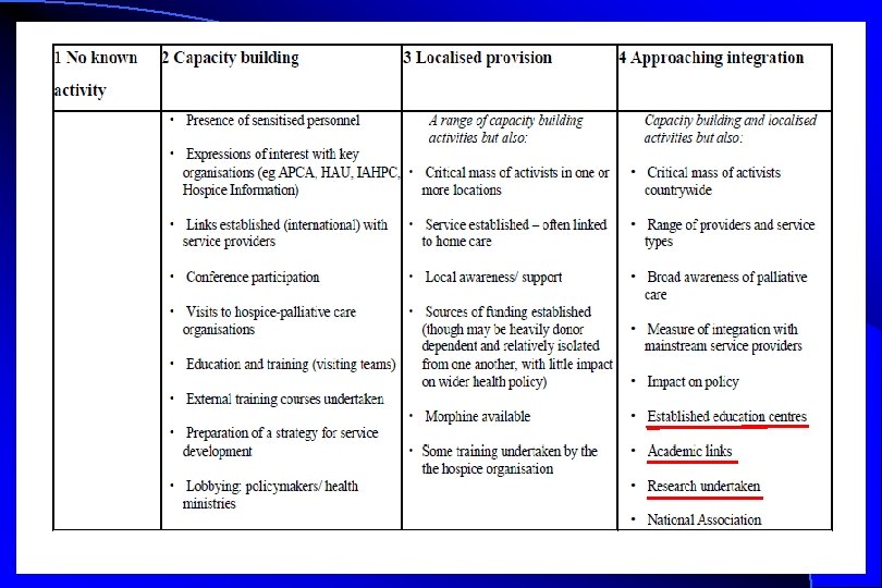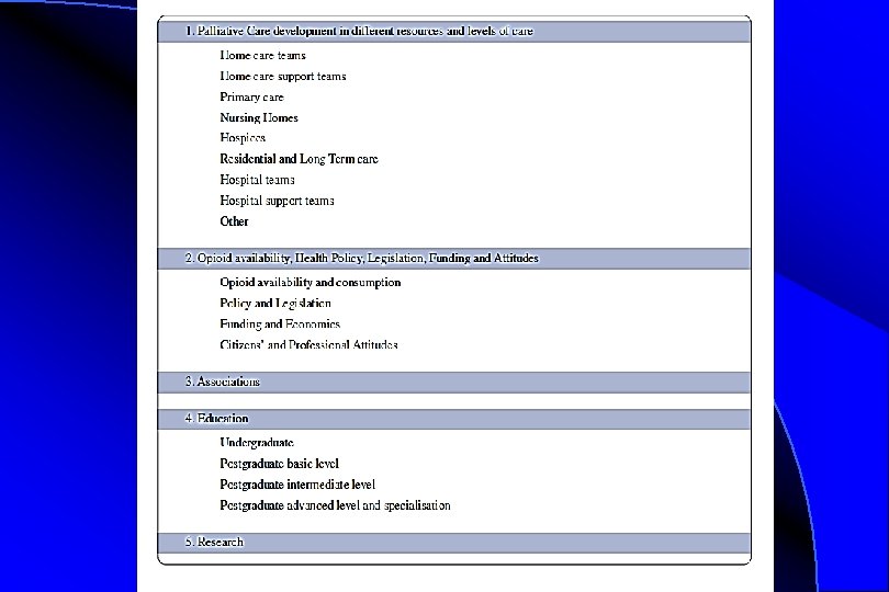 DEVELOPMENT Palliative Care Programs / Services Academic Programs Education/Training and Research
