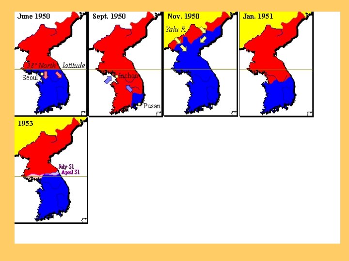 The Korean War: Why? • The Korean War was the result of North Korea (Chinese) invading South Korea in 1950. • United Nations forces (mostly American) fought back the Chinese Communists above the 38 th parallel, but got pushed back to S Korea.