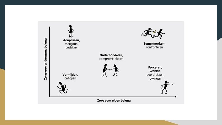 3. Onderhandelingsfase (afspraken maken) A. B. Oplossingen ontwikkelen Concrete afspraken maken om escalatie te voorkomen Basisgespreksvaardigheden ● ● ● Vragen stellen Concretiseren Samenvatten