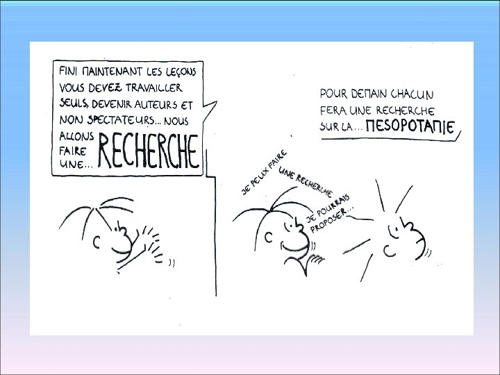 L’élève doit "construire" ses savoirs… C’est nouveau ? « Les méthodes nouvelles qui ont pris tant de développement, tendent à se répandre et à triompher : ces méthodes consistent, non plus à dicter comme un arrêt la règle à l’enfant, mais à la lui faire trouver. Elles se proposent avant tout d’exciter et d’éveiller la spontanéité de l’enfant, pour en surveiller et diriger le développement normal, au lieu de l’emprisonner dans des règles toutes faites auxquelles il ne comprend rien. » Jules Ferry, discours du 2 avril 1880
