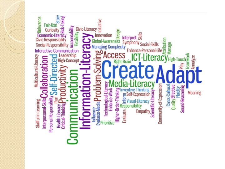 Influence of the Partnership for 21 st Century Skills � Canadian Examples: ◦ 1) British Columbia’s The Premier’s Technology Council: A Vision for 21 st Century Education (2010); ◦ 2) Western and Northern Canadian Curriculum Protocol: 21 st Century Learning and Learners (Friesen & Jardine, 2009); ◦ 3) Prince Edward Island: Proceedings of the Minister’s Summit on Learning (2010); and ◦ 4) New Brunswick’s NB 3 -21 C: Creating a 21 st Century Learning Model of Public Education, (2010). � AASL in USA: ◦ Inquire, think critically and gain knowledge; ◦ Draw conclusions, make informed decisions, apply knowledge to new situations and create new knowledge; ◦ Share knowledge and participate ethically and productively as members of our democratic society; ◦ Pursue personal and aesthetic growth. (AASL, 2006).