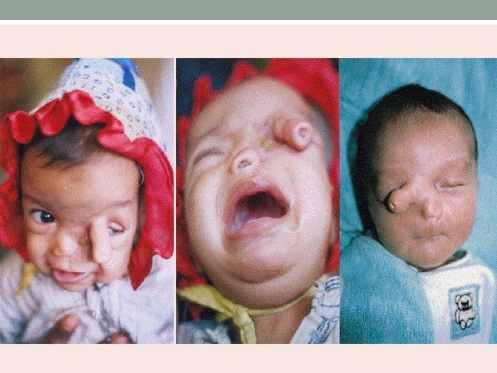 Management • Nutrition – gastrostomy tube • Prosthetic nose • Vertical distraction osteogenesis represents a modality for elongation of the mid face. • Re-establishing the nasal passageway – removing the incisors, creating an airway through the maxilla and releasing the high arched palate.