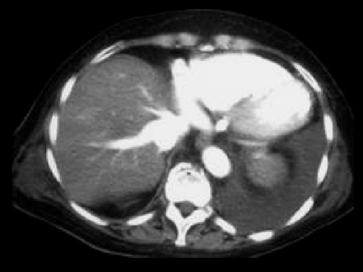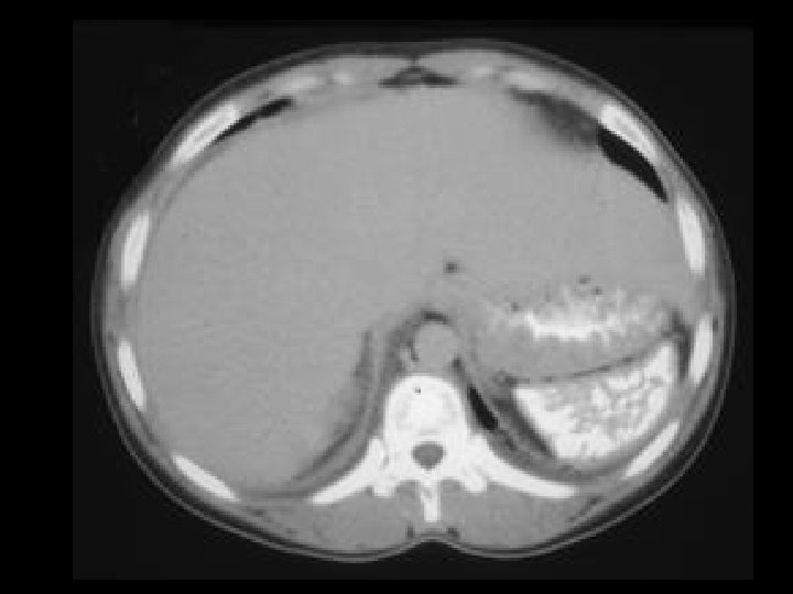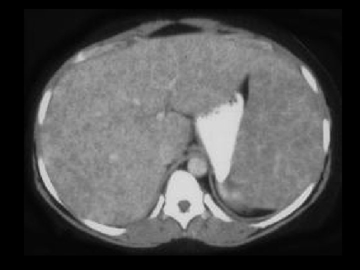 Nutmeg liver due to heart failure • Findings: – CT scan shows ascites and paradoxical enhancement of the liver during the arterial phase • ddx: – Hepatitis – Cirrhosis – Budd-Chiari
