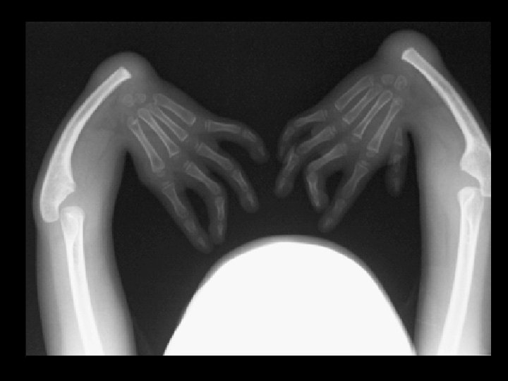 Thrombocytopenia-absent radius syndrome • • Findings: – Absent bilateral radii and left thumb – Prone to bleeding due to thrombocytopenia ddx: – Many other causes of radial dysplasia • Holt Oram • VATER • Fanconi syndrome