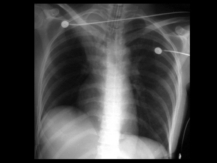 Swyer-James syndrome • Findings: – Hyperlucent left lung – Diminished pulmonary parenchymal and vascular markings – Expiration view shows air trapping • ddx: – Endobronhial foreign body – Pneumothorax – Congenital lobar emphysema – Pulomary artery hypoplasia