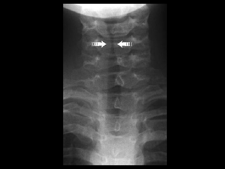 Laryngotracheobronchitis • Findings: – Narrowing of the subglottic airway = “steeple sign” – a. k. a. Croup – viral infxn (parainfluenza) but may be bacterial (S. aureus) – Check lateral film for acute epiglottitis (25% have subglottic narrowing) • ddx: – epiglotitis – membranous croup