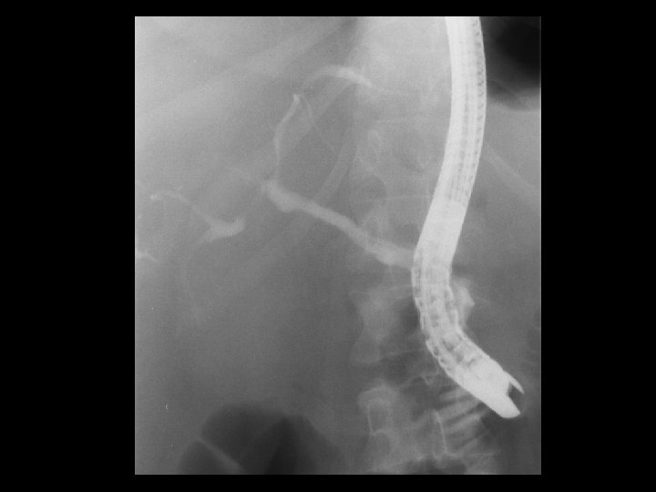 Cholangiocarcinoma • Findings: – ERCP shows diffuse irregular narrowing of the CBD and intrahepatic biliary tree • ddx: – Scerlosing cholangitis – Ascending cholangitis – AIDS cholangiopathy