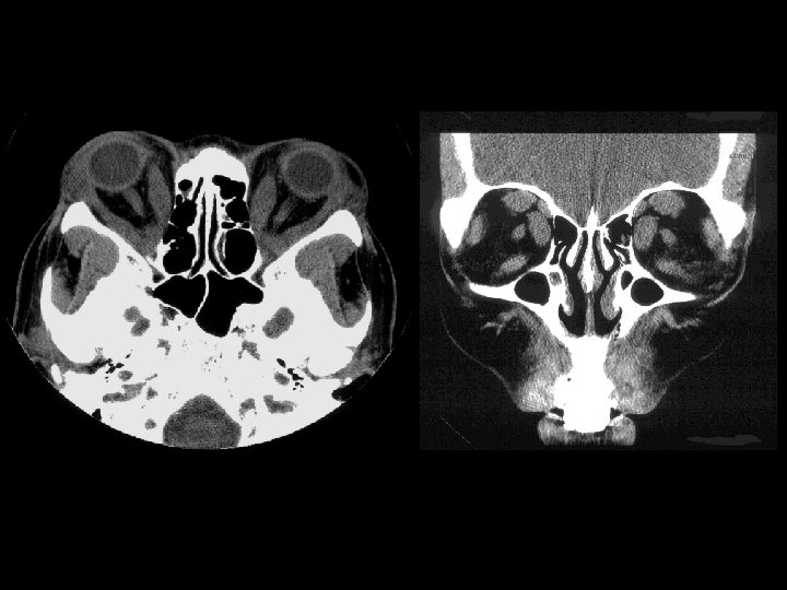 Thyroid opthalmopathy • Findings: – Bilateral enlargement of the extraoccular muscles except the lateral rectus = “I ’ M S L ow” – Sparing of the tendon – Usually NO eye pain • ddx: – Pseudotumor • Involves tendons • Pts have eye pain