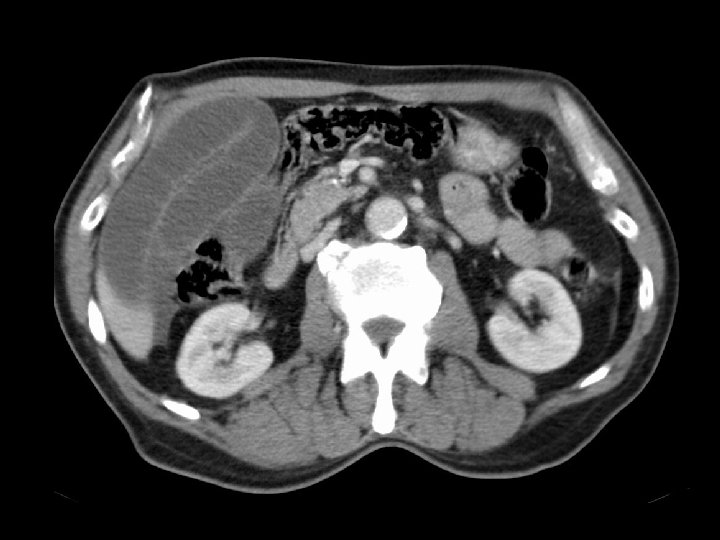 Emphysematous cholecystitis • Findings: – Distended gallbladder with gas within the wall – Increased risk in pts. with DM – Surgical emergency • ddx: – NONE! – This is an Aunt Minnie!