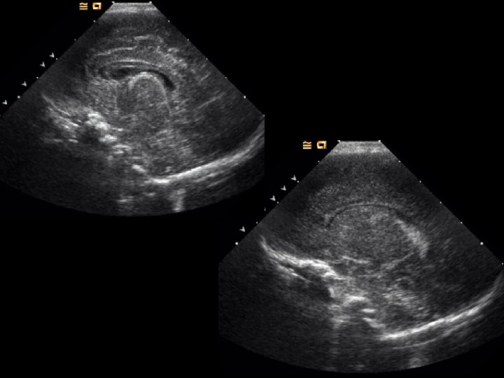 Normal head US • Findings: – Sagittal images through the anterior fontanel show normal appearance of the caudo-thalamic groove – Normal choroid plexus in the lateral ventricle