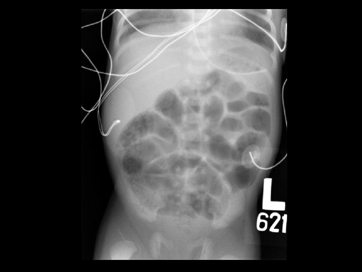 Early necrotizing enterocolitis • Findings: – Mildly distended bowel loops with “soap bubble” appearance in the RLQ – No evidence of pneumatosis or perforation • Rx: bowel rest; surgery if free gas • ddx: – NONE! – This is an Aunt Minnie!