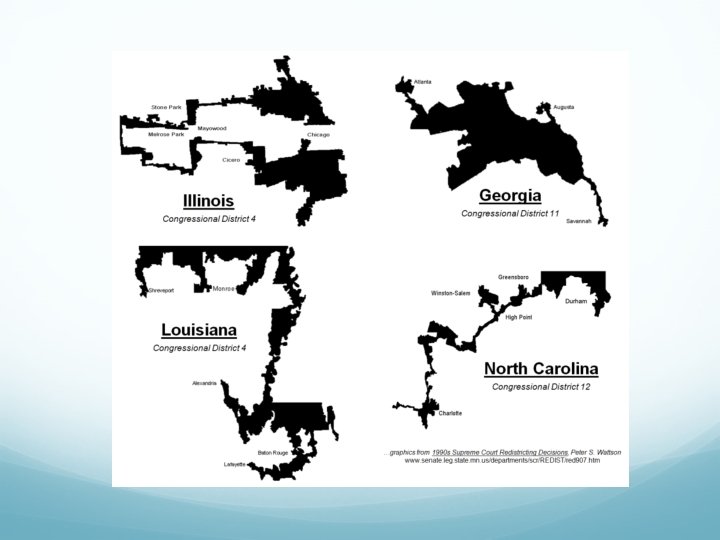 Types of Gerrymandering Partisan Gerrymandering Incumbent Gerrymandering Racial Gerrymandering Candidate Gerrymandering