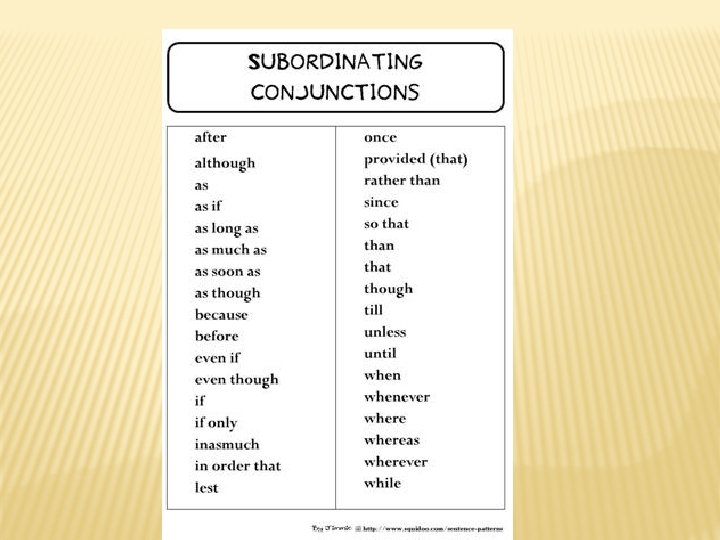 CONJUNCTIONS Subordinating Conjunctions A subordinating conjunction introduces a