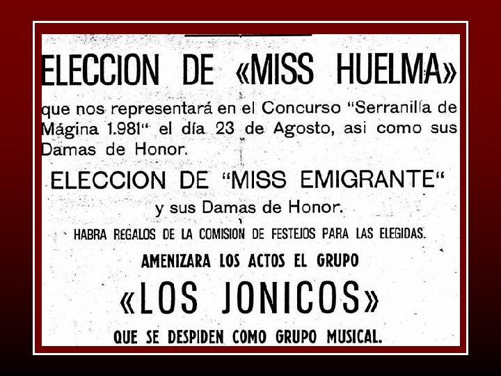 n El conjunto se disolvió a principios de los 80 n Le sirvió como marco la elección de Miss Huelma en los preámbulos de la feria de Agosto.