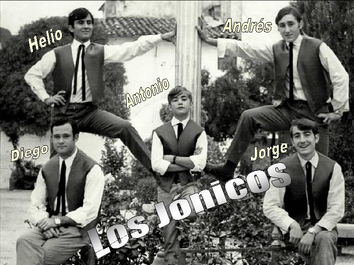 Por entonces estudiaban bachiller Helio y Jorge y un día, sentados en la tapia del jardín hablaban de arte. La conversación era sobre la iglesia de Huelma y los estilos de sus columnas. Salían a relucir las palabras: Jónico, Corintio y Dórico. Por allí andaba también Anselmo López, hijo del que fuera alcalde de Huelma D. Baltasar López. Anselmo mantenía que la música del conjunto era un arte y lo comparó con el arte Jónico. La idea fue tomando forma y todos estuvimos de acuerdo finalmente en llamarlo así.